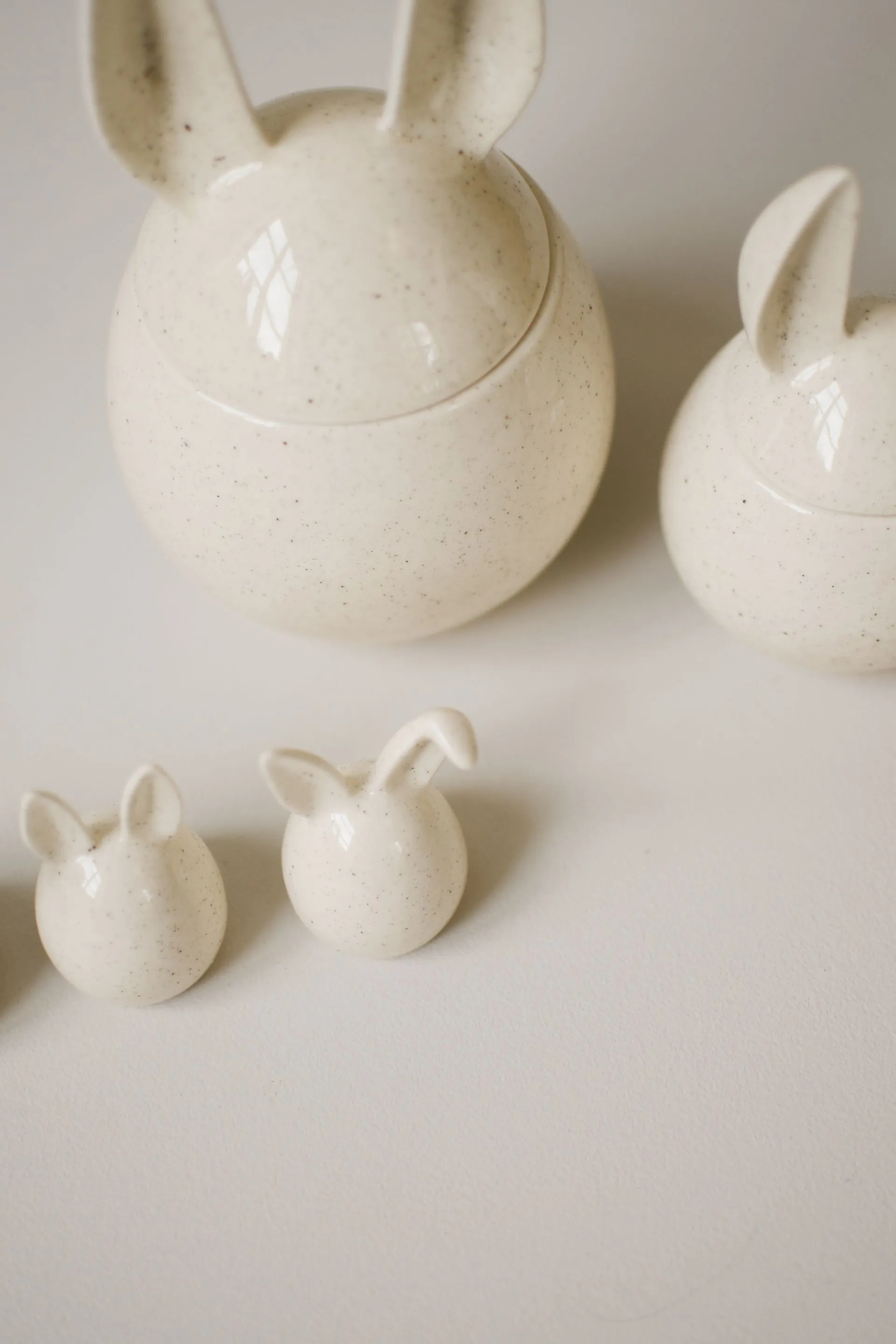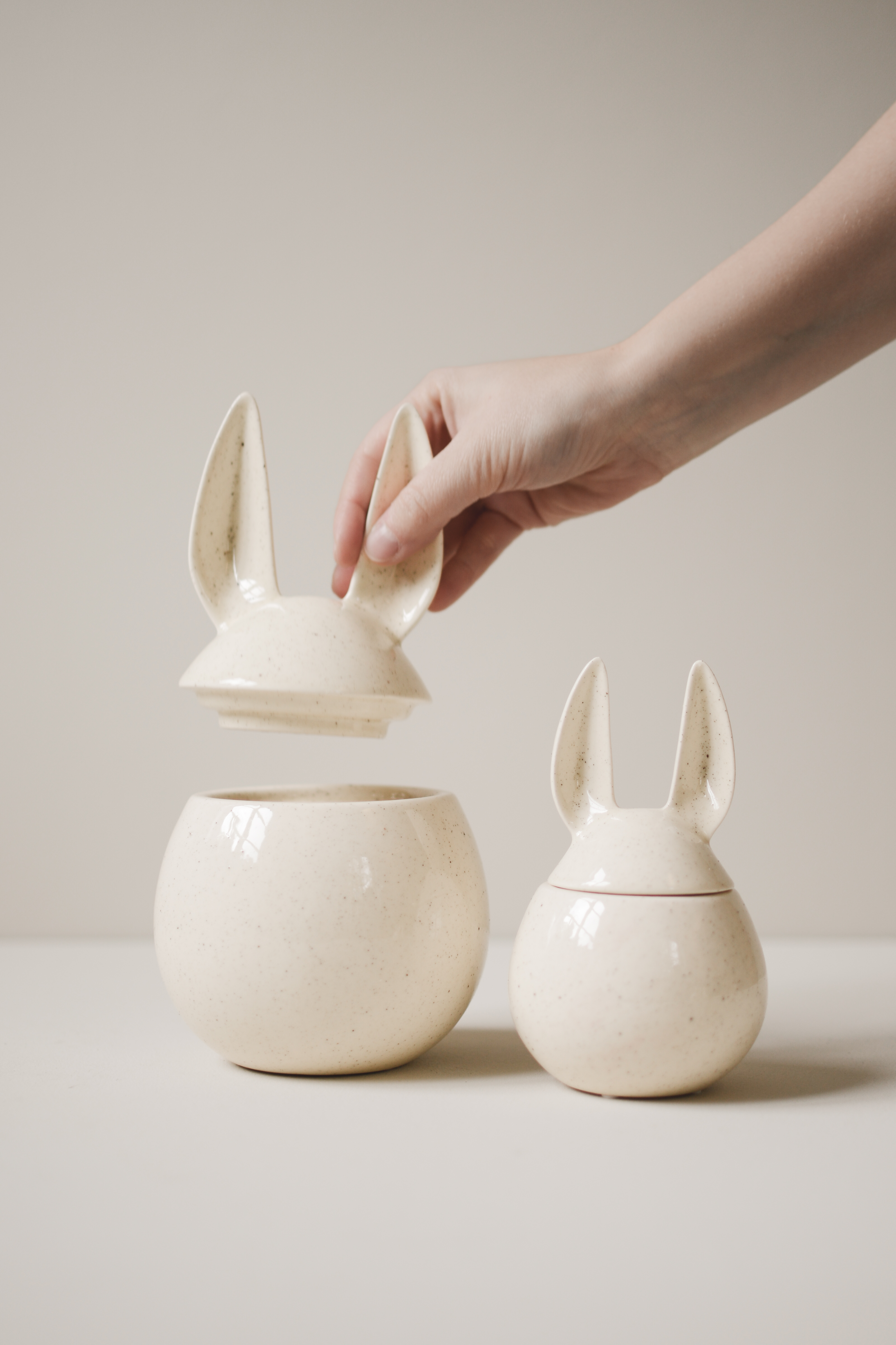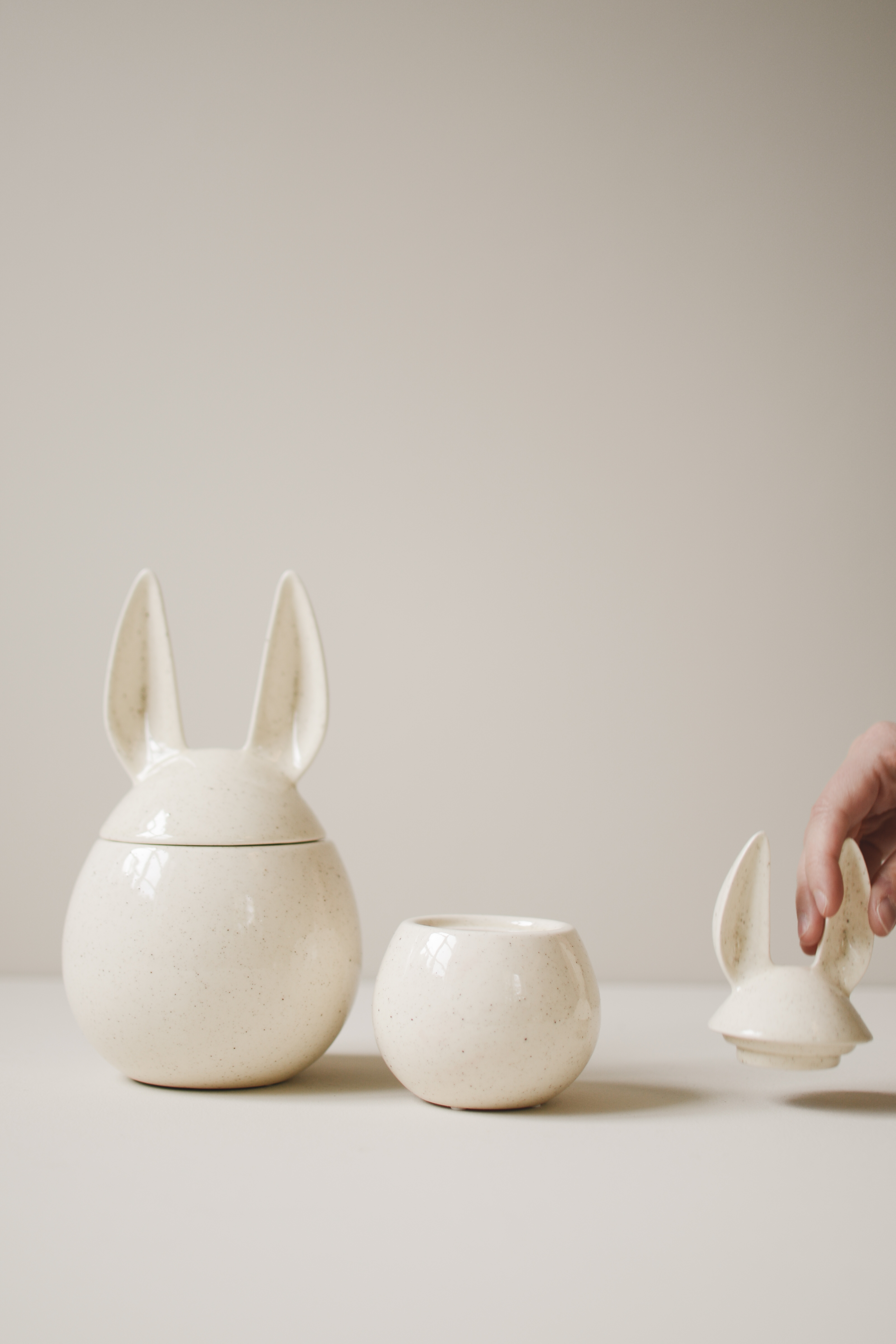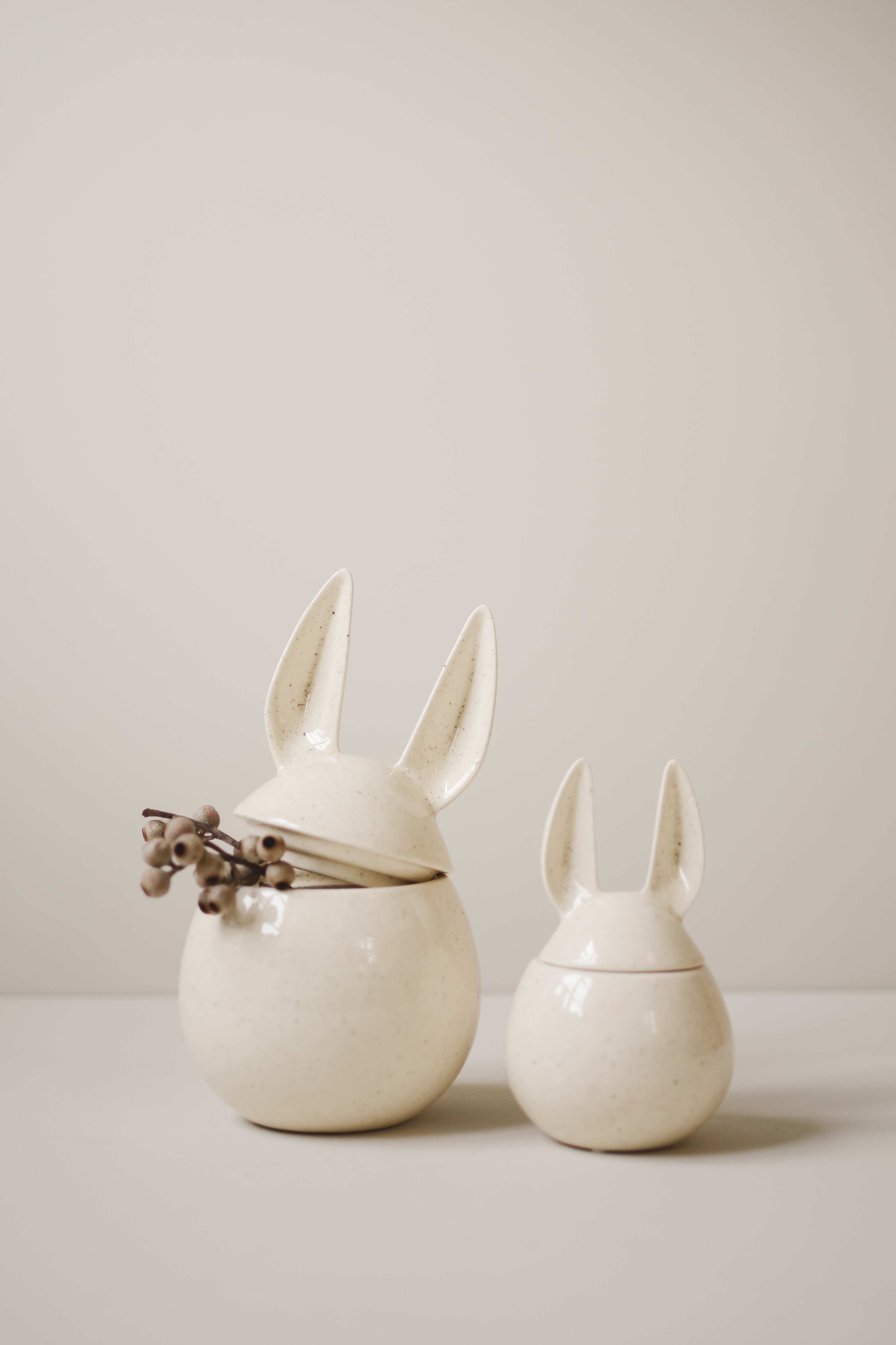 Die DBKD Eating Rabbit Schale groß vereint skandinavisches Design mit verspielter Osterdekoration. Mit ihrer minimalistischen Form und den charakteristischen Hasenohren ist sie eine moderne Interpretation des klassischen Osterhasen. Ob als Servierschale für Ostersüßigkeiten oder stilvoller Vorratsbehälter, dieses hochwertige Keramikstück setzt elegante Akzente auf Tisch oder Fensterbank.