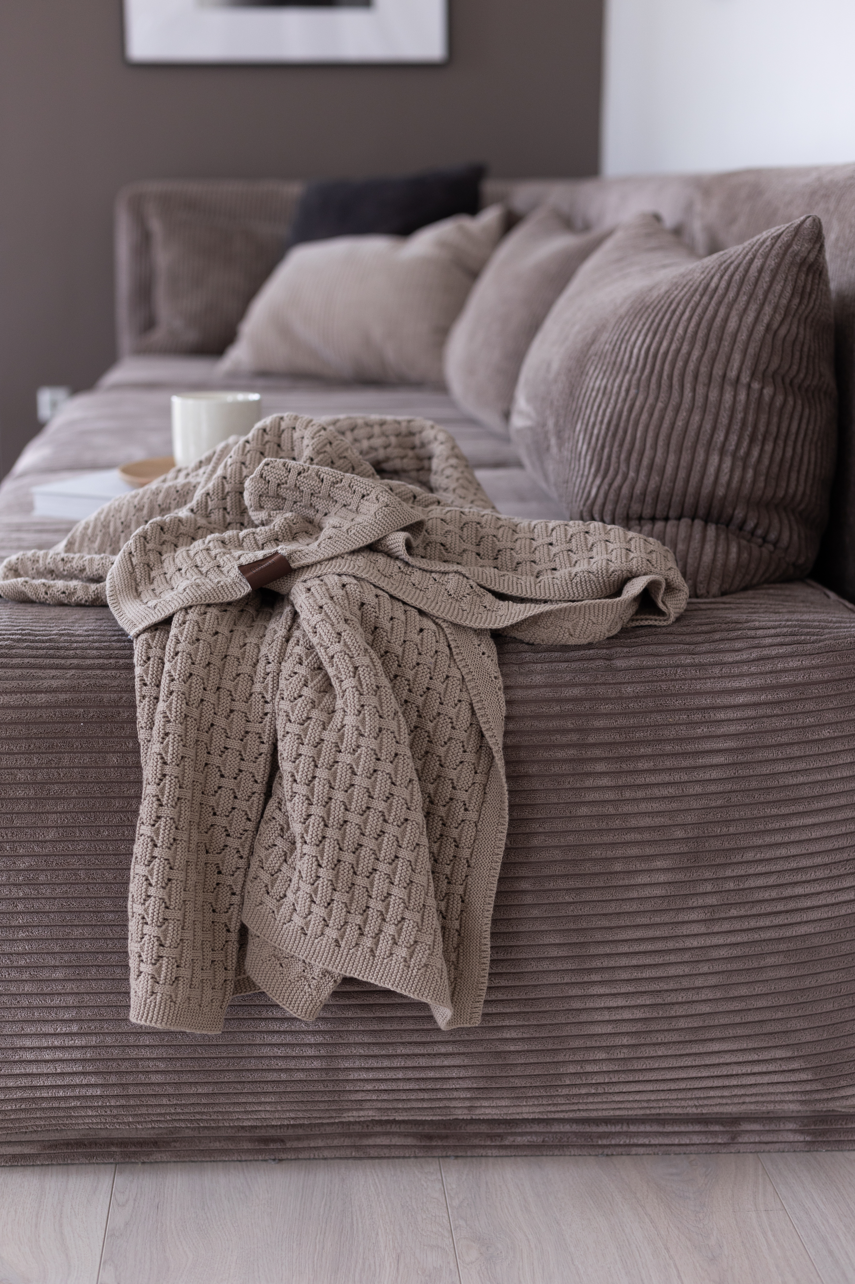 Ideal für alle, die keine Wolle mögen, reguliert die Baumwolle die Wärme natürlich. Das minimalistische Design in einer nordischen Farbe macht sie nicht nur zur kuscheligen Decke, sondern auch zum stilvollen Wohnaccessoire auf dem Sofa.