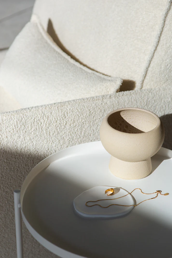 Die handgefertigte Holden Glazed Vase begeistert mit ihrer einzigartigen, cremefarbenen Textur und einem von vulkanischen Elementen inspirierten Design. Die edel glasierte Keramikvase verleiht jedem Raum eine elegante und stilvolle Note, die moderne und natürliche Akzente harmonisch verbindet. Perfekt als Dekorationsstück, um Ihrem Zuhause Charakter und zeitlose Eleganz zu verleihen.
