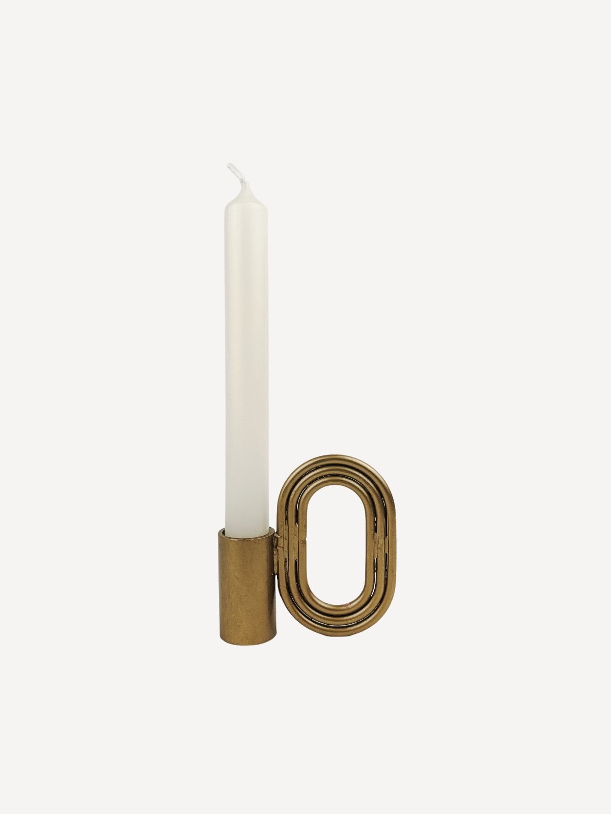 Der Vevi Kerzenhalter von Bloomingville ist aus messingfarbenem Eisen gefertigt und verfügt über einen kleinen, praktischen und schönen Griff. Perfekt, um in einer Gruppe mit anderen Wohnaccessoires für einen perfekten und modernen Look gestylt zu werden.