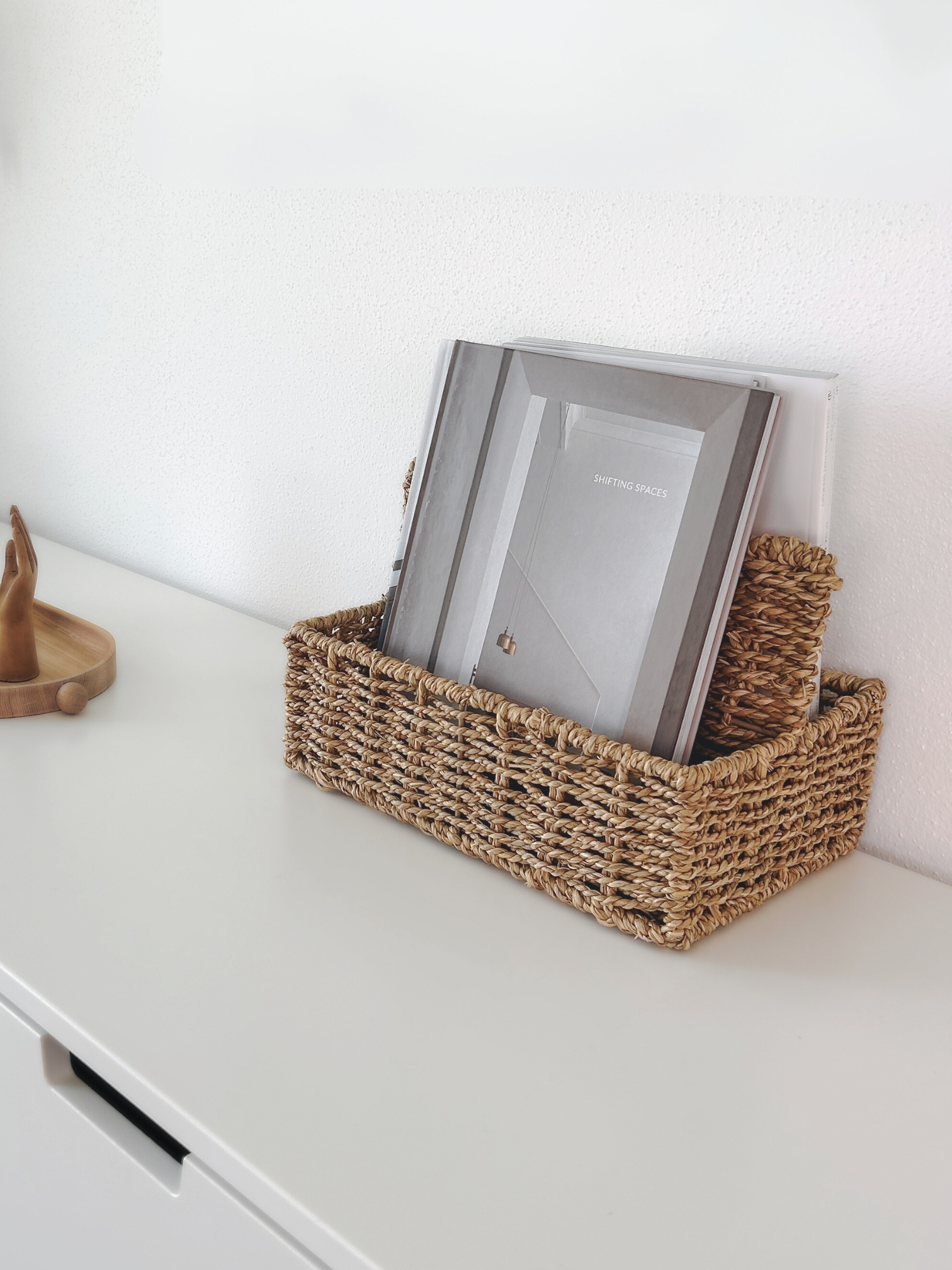Der geflochtene Korb Elstra ist hergestellt aus natürlichem Seegras. Er ist die perfekte Lösung für Aufbewahrung und Dekoration. Der rechteckigen Korb hat einen natürlichen Farbton und fügt sich mit der matten Optik nahtlos in verschiedene Wohnbereiche ein. Das einfarbige Design mit Henkel-Tragegriffen aus Naturmaterial verleiht dem Artikel einen rustikalen Charme. Er ist ein vielseitiges Accessoire im Nature-Stil.