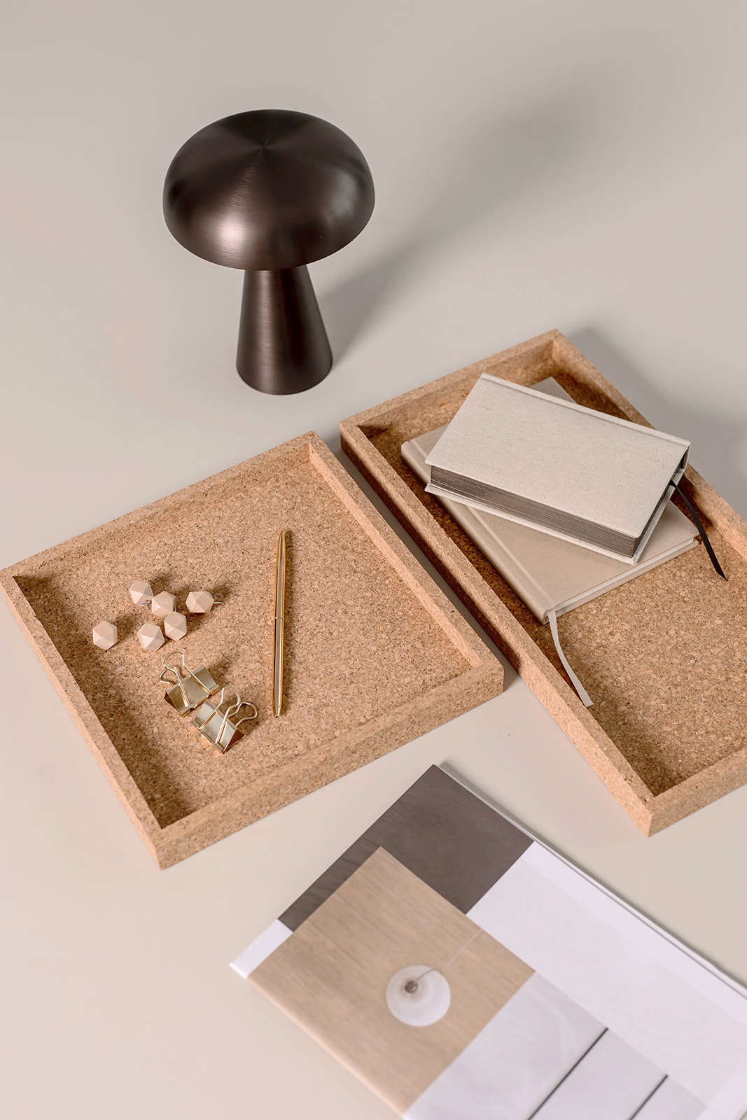 Das Korktablett aus natürlichem Kork bringt eine warme und strukturreiche Note in dein Zuhause. Es ist in verschiedenen Farben erhältlich und bietet dir unzählige Einsatzmöglichkeiten. Nutze es zur stilvollen Organisation deines Arbeitsplatzes, als Basis für kleine Stillleben, zur Aufbewahrung von Ölen und Gewürzen auf dem Küchenregal oder um deine Lieblingsprodukte im Badezimmer elegant zu präsentieren.