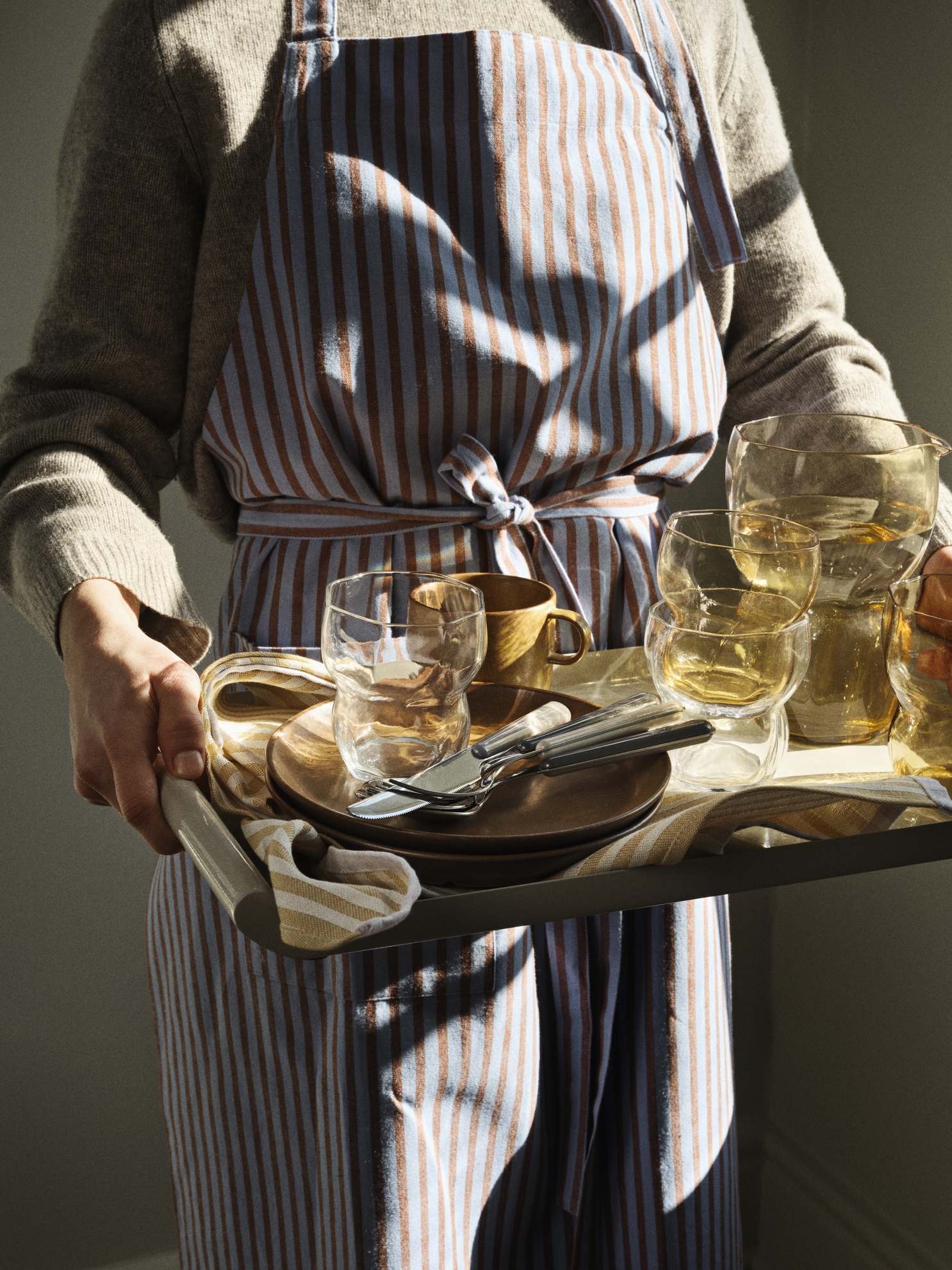 Das Tablett Charlie hat ein schlichtes elegantes Design und ist aus pulverbeschichtetem Metall. Es eignet sich perfekt zum Servieren von Speisen und Getränken. Es besteht aus einer rechteckigen Grundfläche mit einem umlaufenden, hohen Rand. An den Seiten ist das Tablett mit praktischen Tragegriffen versehen.