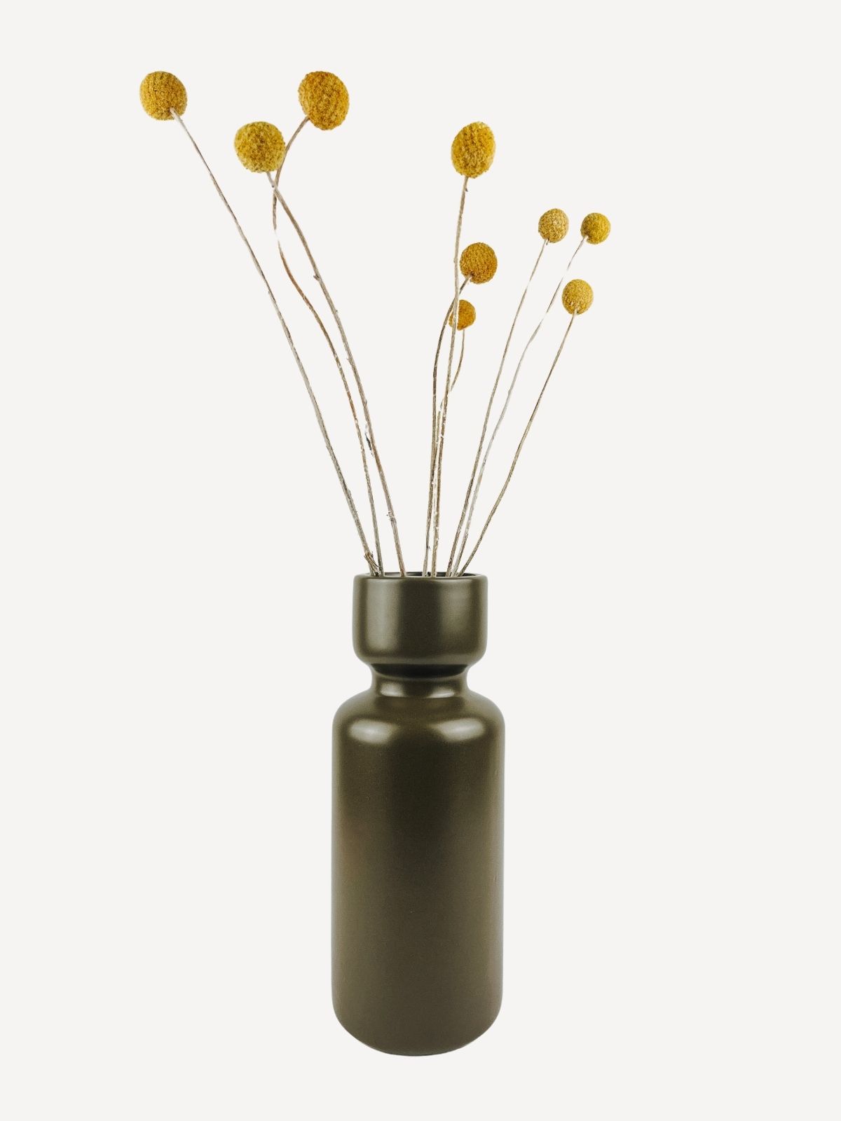 Die Vase Ibro von Bloomingville besteht aus Keramik mit einer dunkelgrünen Glasur und präsentiert sich im modernen rustikalen Stil. Die Vase hat die perfekte Größe und Öffnung für hohe Blumensträuße. Dekoriere die dunkle Vase mit Blumen in leuchtenden Farben, um einen schönen Kontrast zu schaffen. Aufgrund der einzigartigen handgefertigten Herstellung können Farbvariationen auftreten.