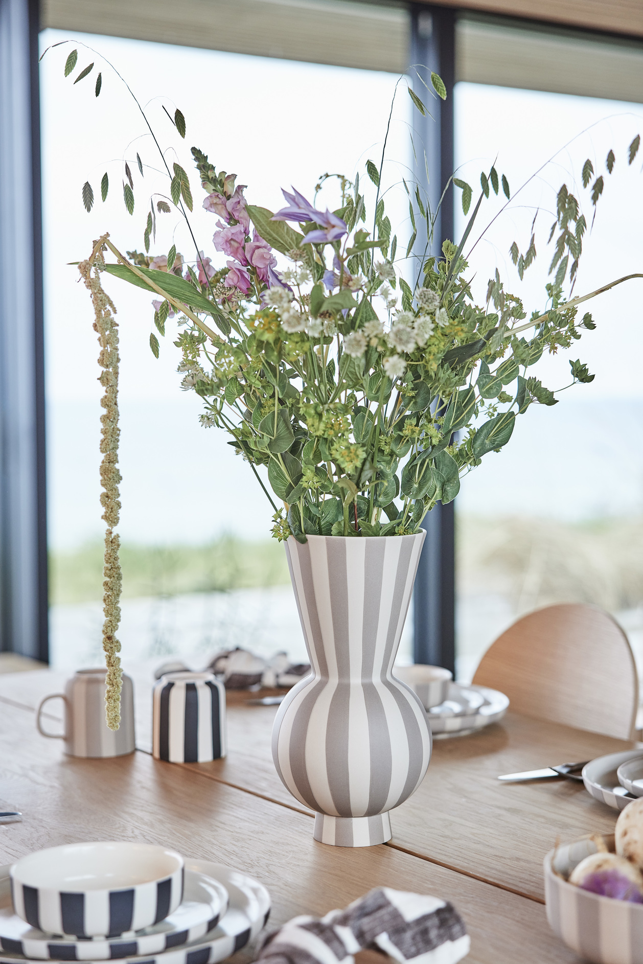 Die runde Vase von Toppu ist ein geliebtes Mitglied der Toppu-Familie und ein Klassiker von OYOY. In präziser Handarbeit malt ein hochqualifiziertes Team jeden einzelnen Streifen mit viel feingefühl und stellt damit sein Fachwissen unter Beweis.Dasselbe engagierte Team fertigt alle Toppu-Artikel an und gewährleistet so eine gleichbleibende Handwerkskunst.